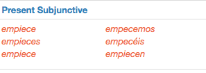 Alright first of all let’s look at what words we don’t know here, you can probably guess the obvious such as “suite” meaning “suite” as in a hotel suite, “lo” can mean “he/she” or “it” but in conjunction with “que” as in “lo que” you get a very common expression that best translates to “that which”. “Empezar” is an irregular verb in Spanish that means “to begin”, irregular means that the conjugation isn’t the standard -ar verb conjugation, the change comes at the end and you will see this same change with all such verbs ending in “-ezar”, the only thing different you do is add an “i” before the second “e” for all forms in the present and present subjunctive except nosotros and vosotros as well as change the “z” to a “c” in the present subjunctive, as such (credit: SpanishDict’s fantastic conjugation tool):